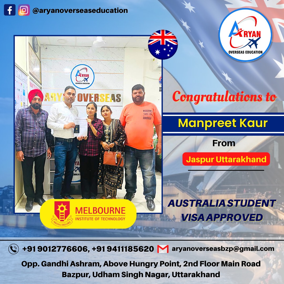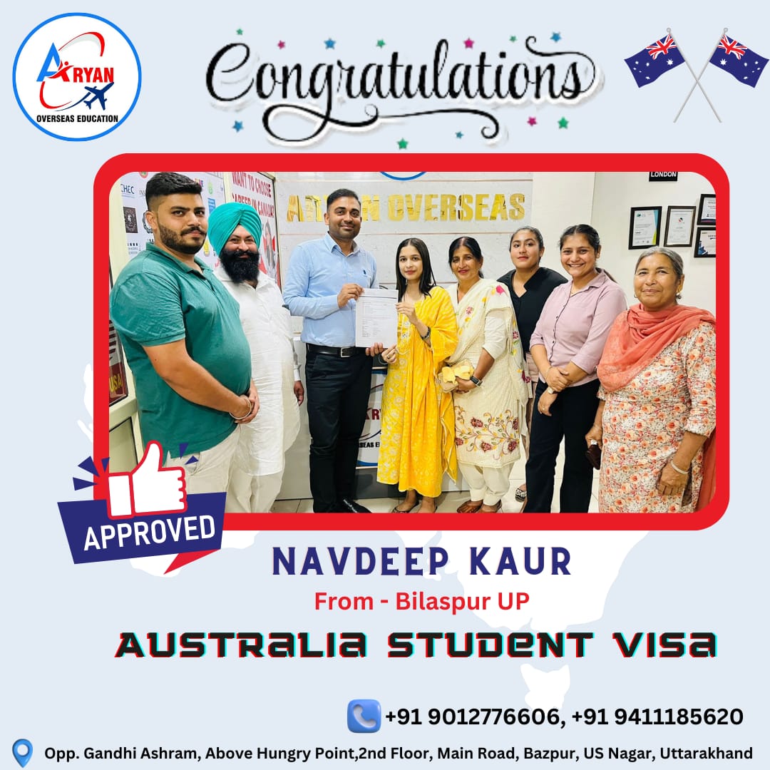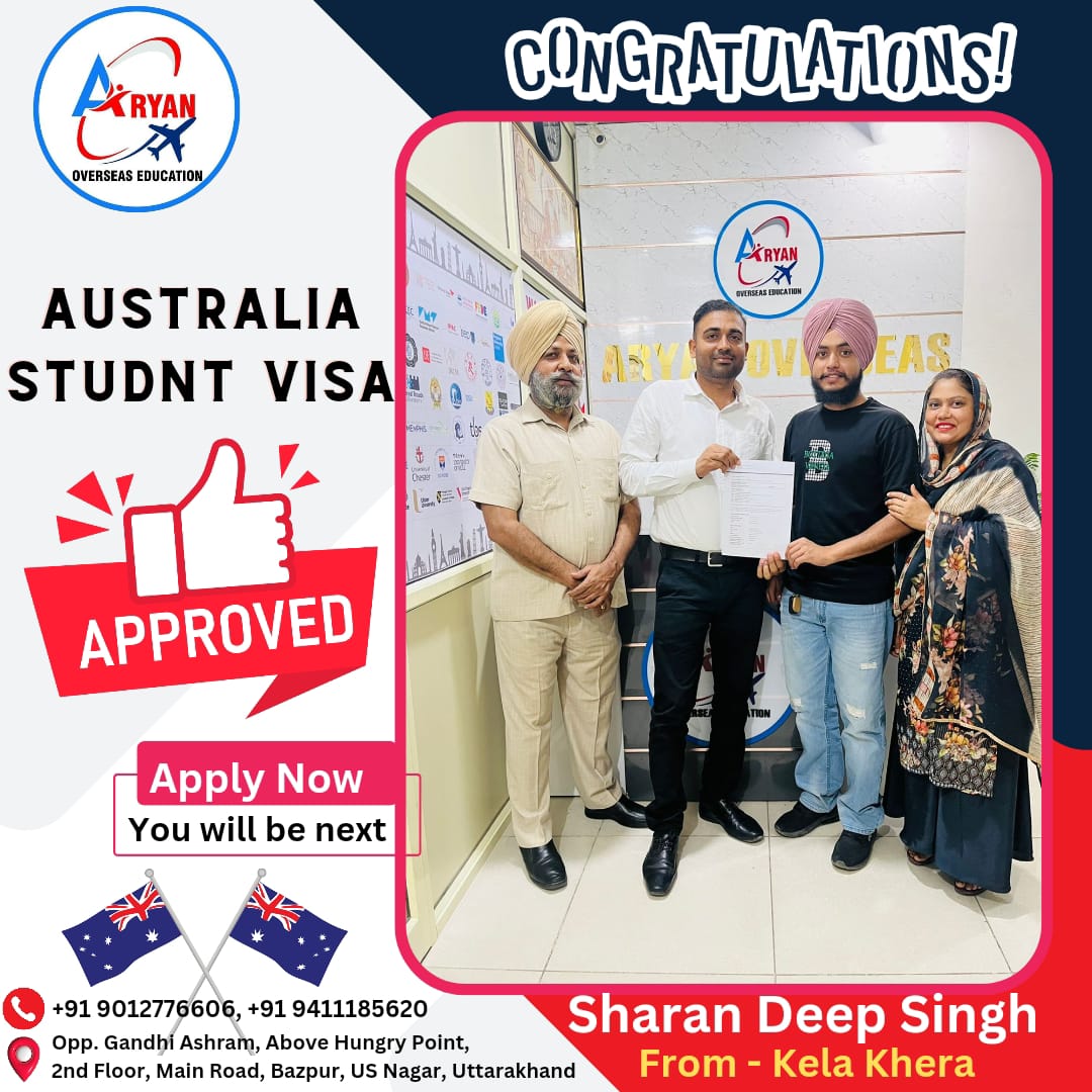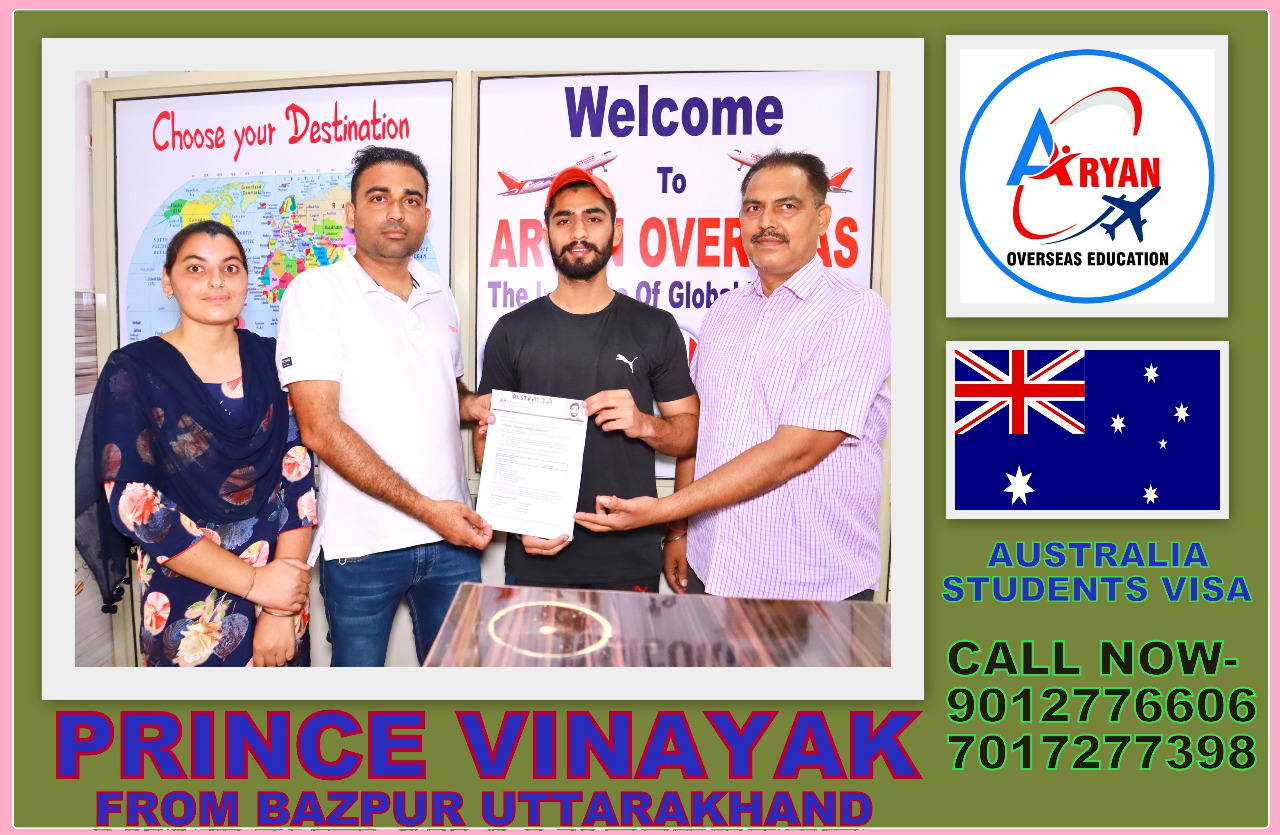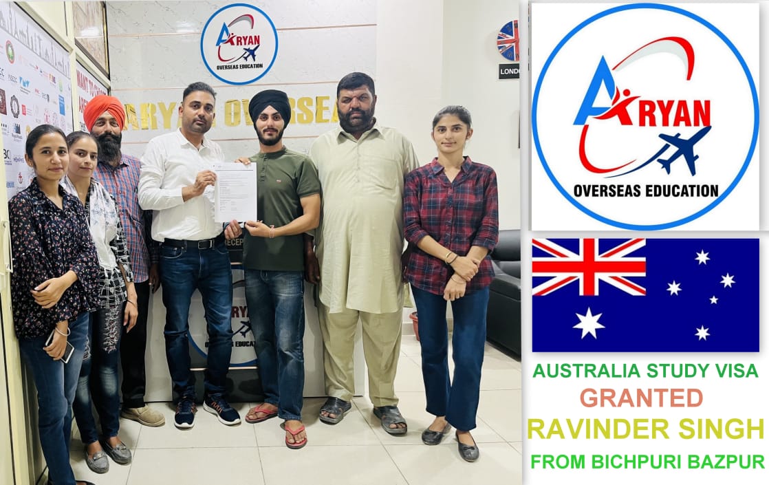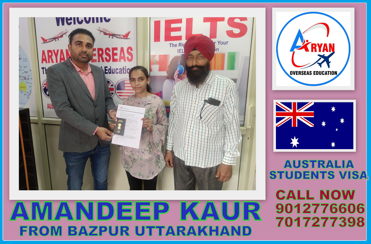 I GOT MY AUSTRALIAN STUDY VISA WITH THE HELP OF ARYAN OVERSEAS AND I REALLY APPRICIATE HARD WORK DONE BY TEAM ARYAN OVERSEAS