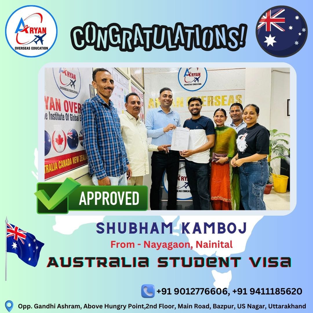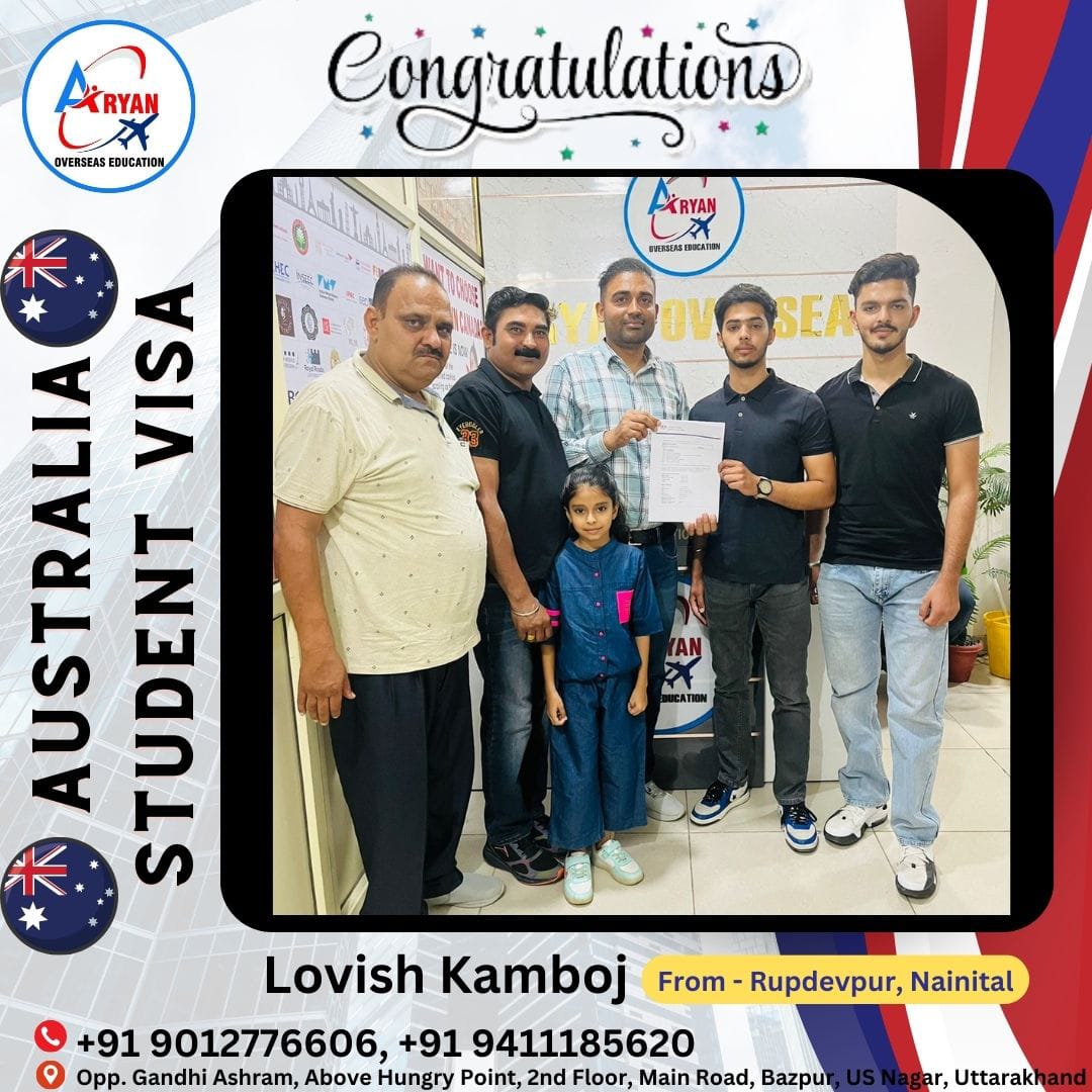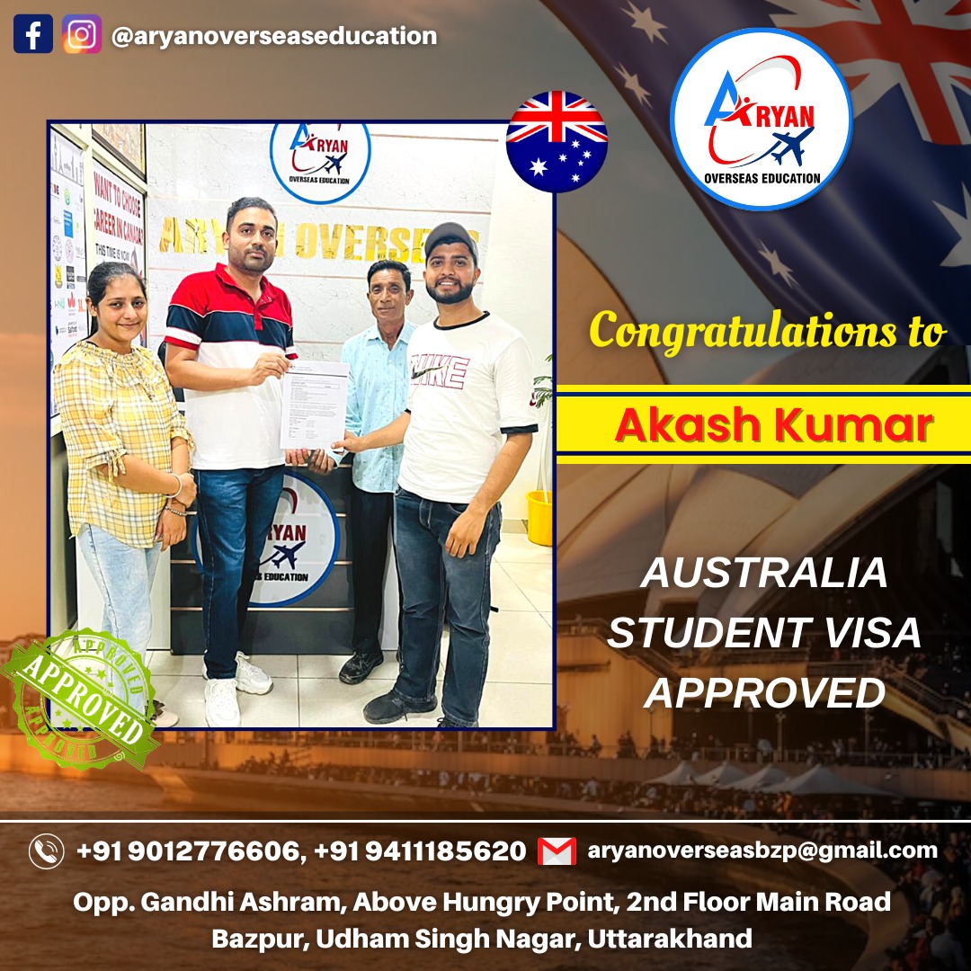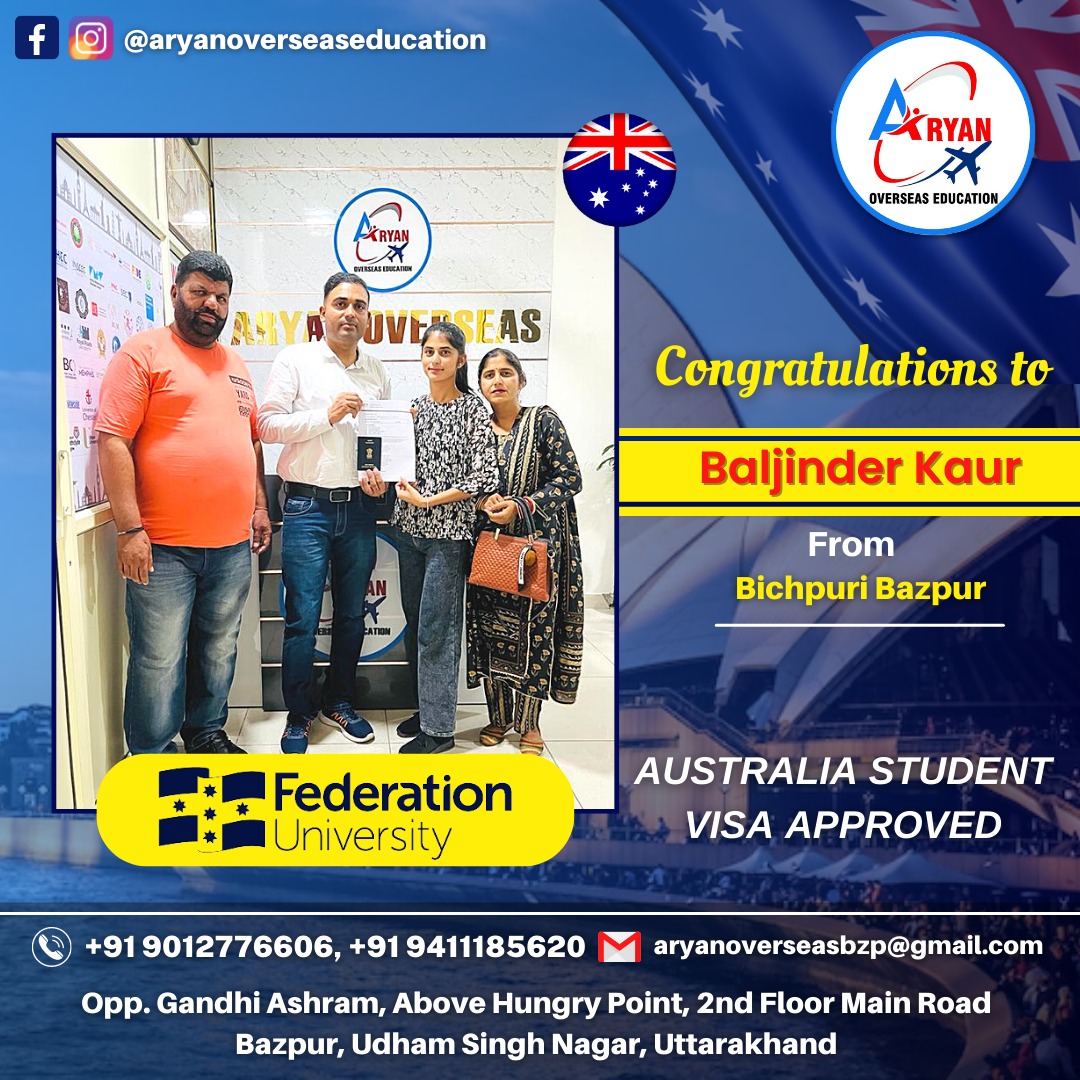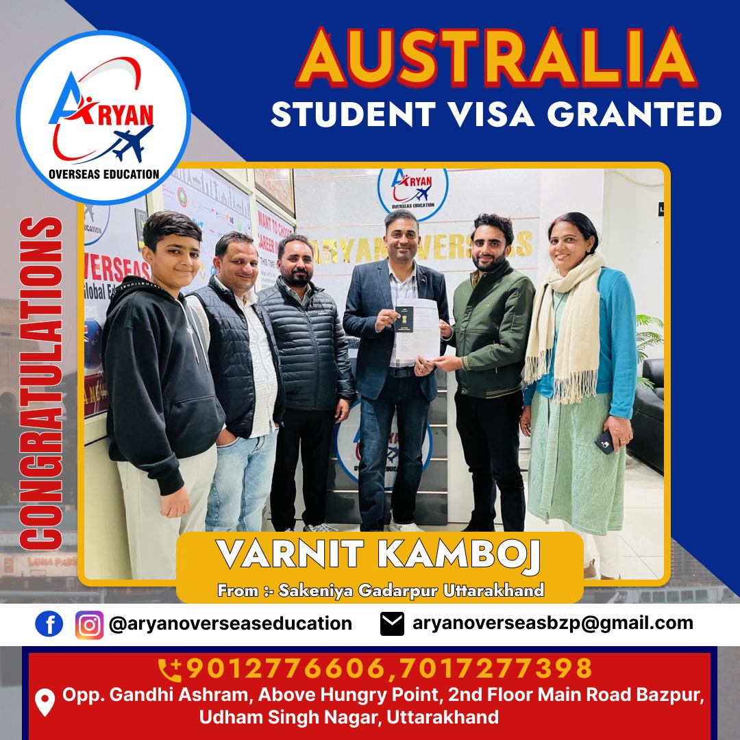 I GOT MY AUSTRALIAN STUDY VISA WITH THE HELP OF ARYAN OVERSEAS AND I REALLY APPRICIATE HARD WORK DONE BY TEAM ARYAN OVERSEAS