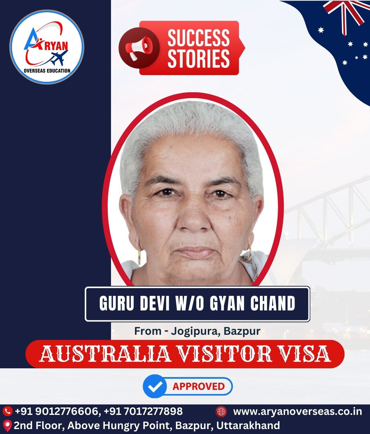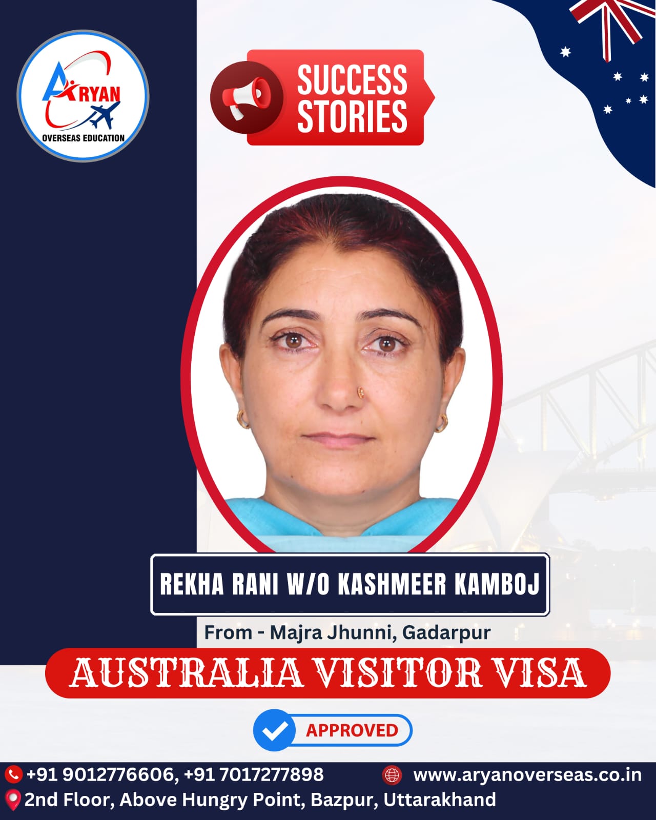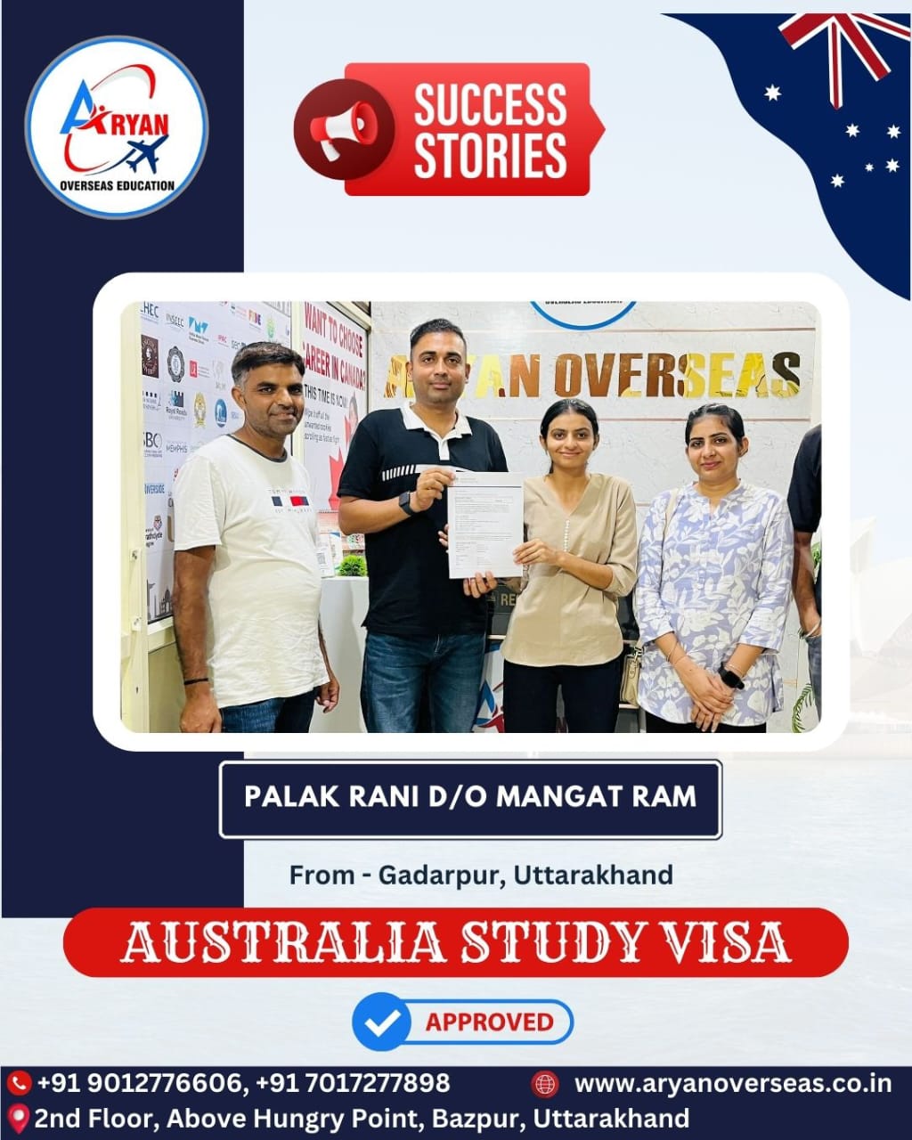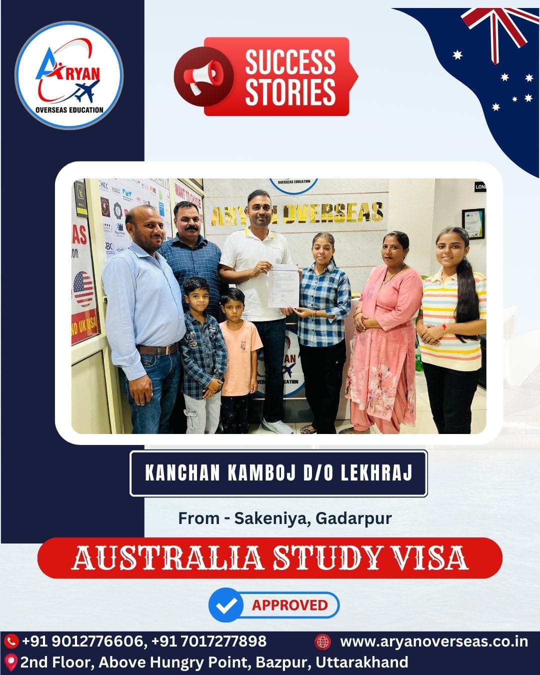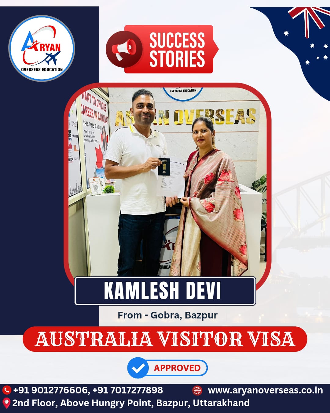 I GOT MY AUSTRALIAN STUDY VISA WITH THE HELP OF ARYAN OVERSEAS AND I REALLY APPRICIATE HARD WORK DONE BY TEAM ARYAN OVERSEAS