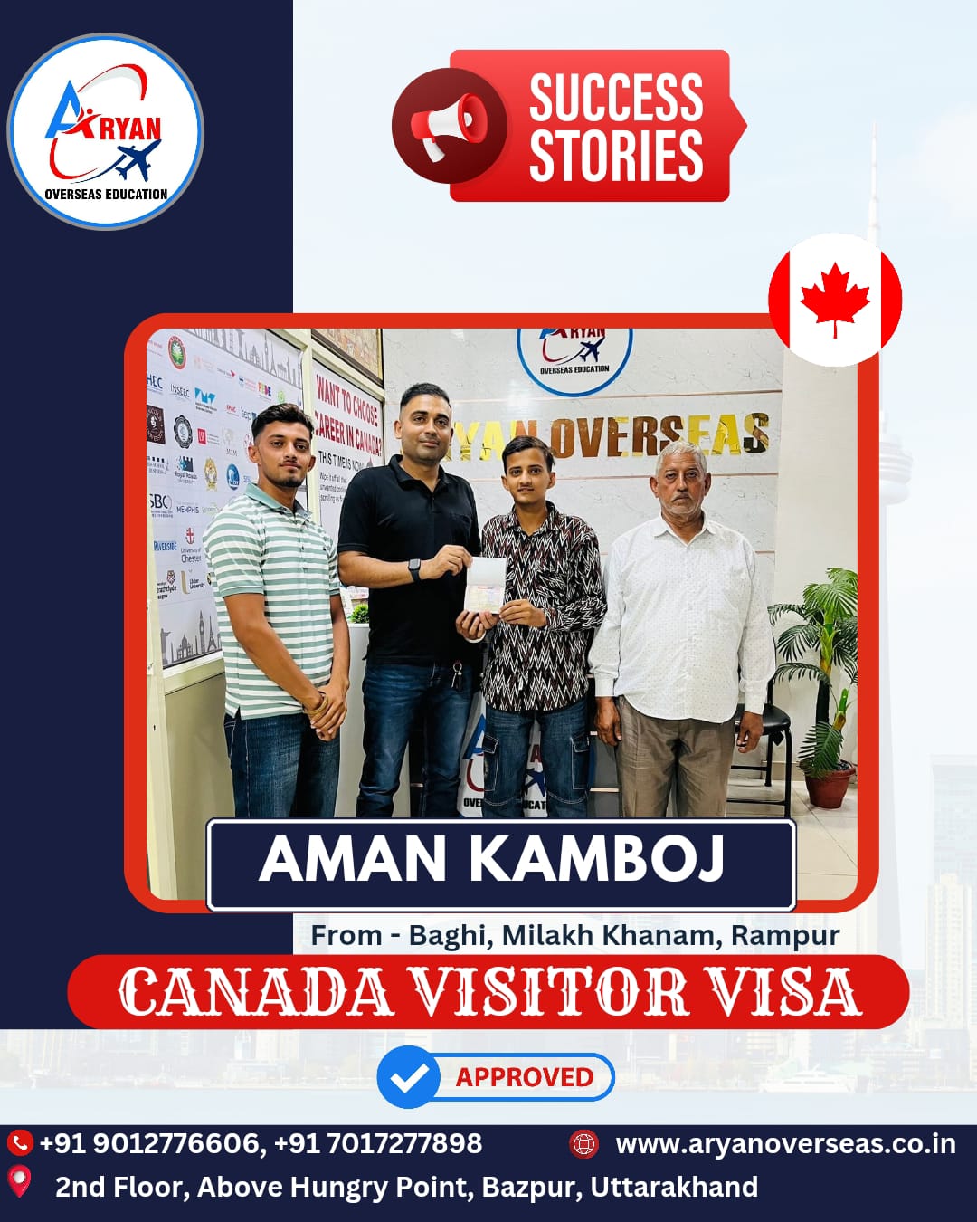 Thanks to Aryan Overseas, my immigration process was smooth and efficient. Their dedicated team guided me at every step, making my dream of studying abroad a reality.
