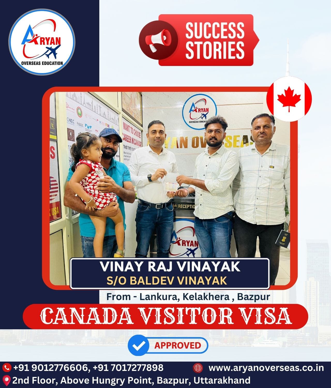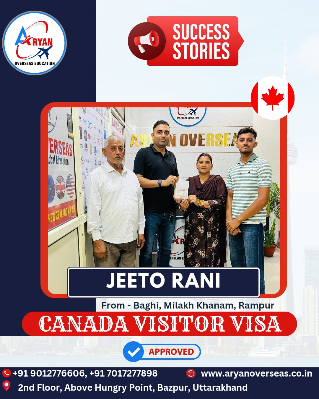 Aryan Overseas transformed my aspirations into a reality. Their meticulous planning, timely assistance, and friendly approach made the immigration process not just manageable but truly enjoyable.