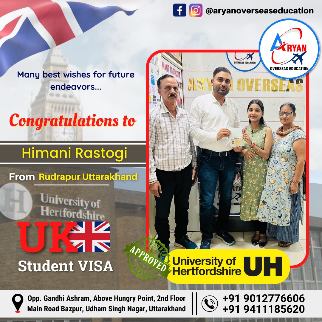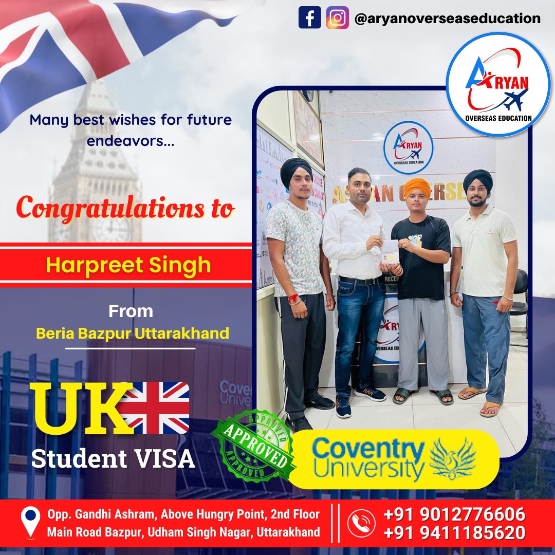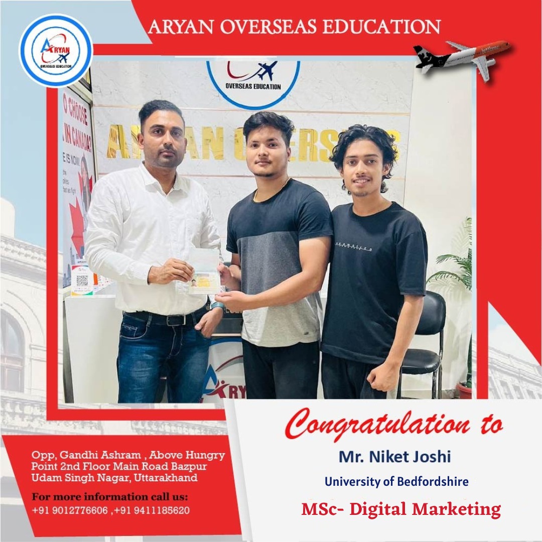 I am thankful to Aryan Overseas for making my dream of studying abroad a reality. Their step-by-step guidance and proactive approach ensured that I felt supported at every stage.